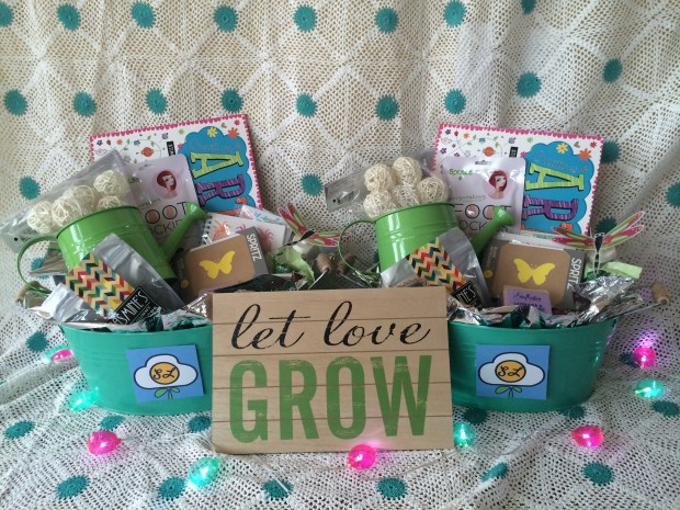 I love spring! It’s my favorite season! I’m celebrating and thanking my readers, by giving away two gift baskets at once. Here’s a chance to win, for both you, and a friend! Some things inside are: Grown up spring art and coloring book, markers, SpaLife footies, butterfly notecards, garden ball lights, journal, chocolate, watering can, fancy soap, and more…plus a garden sign for the main winner!