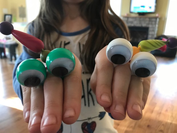 Then leaning on my cane, for my daily walk, we went into… YES! Hope’s Treasures! There were records and books which kept him interested, even though he’s always patient with me, so I can look around! The money spent there goes to help the homeless community of Loudoun. I like the spirit of compassion at the center of this place. There’s always something fun and inexpensive to take back home, like this funky collection of beads, which my daughter used to create into party hats for her Oobies!