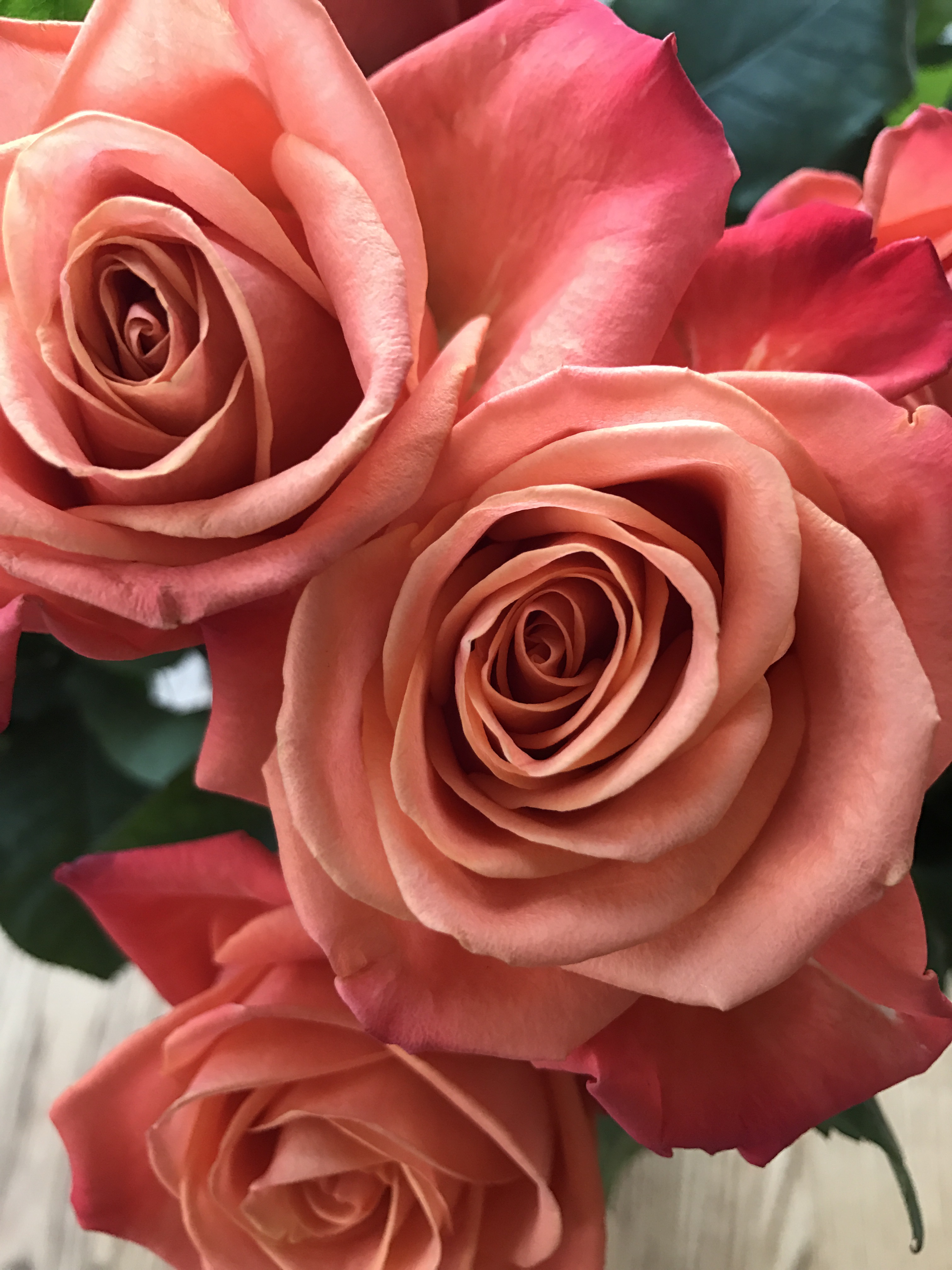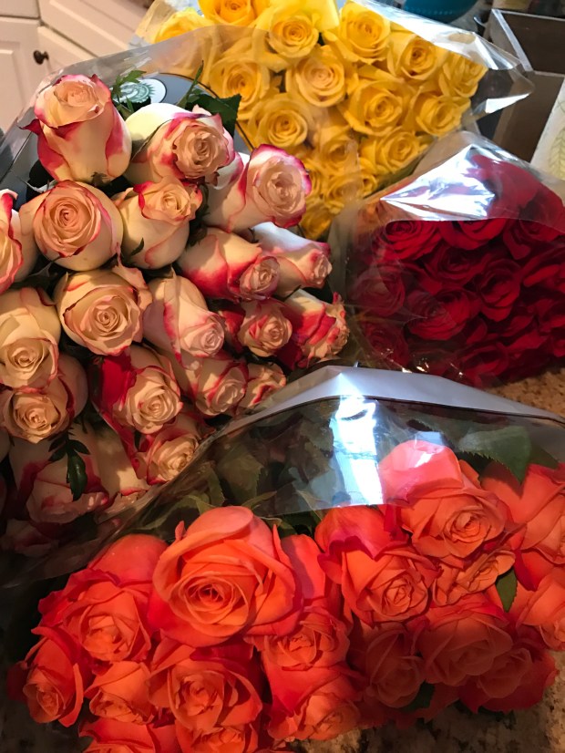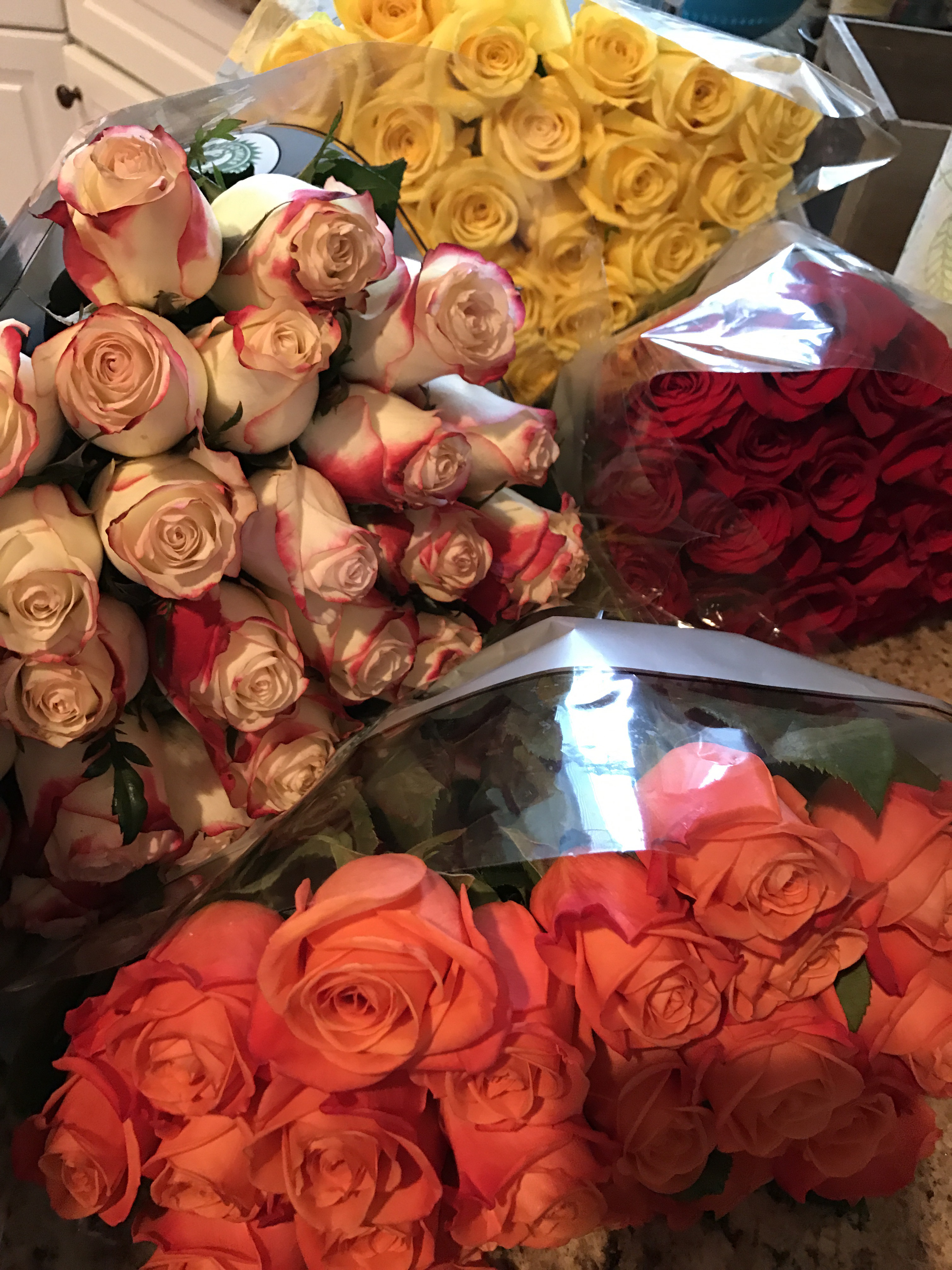 The first significant thing I noticed was that in spite of me making it clear that I was still very upset about our argument, my husband arrived home and walked upstairs, carrying these four bouquets of double dozen roses in his arms. When he’s brought flowers home before, he’s always left them downstairs for me to discover. He was on a mission, and it certainly looked like he had decided the devil wasn’t going to win this one! He was letting me know our anniversary was coming up, and he wanted to celebrate, even if things weren’t 100% perfect. As I looked from one bouquet of two dozen roses to another; taking in all four bouquets of my favorite colored roses, I starting laughing out loud. It was a ridiculously glorious amount of flowers. “What are you doing?” I’d been upset during that day, but now I couldn’t help laughing.