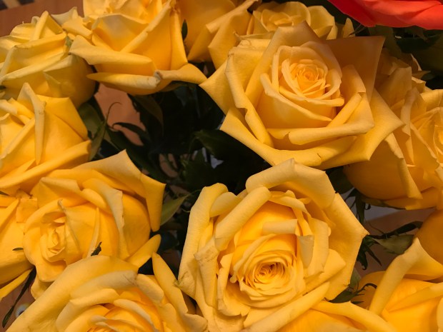 There was significance in the colors my husband chose. All my favorites were there, and he told me he’d chosen them because he knew they were my favorites. Yellow roses have always been my favorite, and representative of our love. My husband had brought me yellow roses on our first date, not knowing they were the color of roses I so loved. This was even significant of the fact that he’d brought me two dozen yellow roses, at separate times, giving them to me all at once. He’d bought me a dozen roses for our first date, but since we had to move it to a few days later, he had brought me both bouquets to ensure that I would have fresh flowers, since the first bouquet, while still open and lovely, wouldn’t last as long as the second with the blooms still closed. I remember being surprised, and pleased, that a man would be so thoughtful to do this just for me.