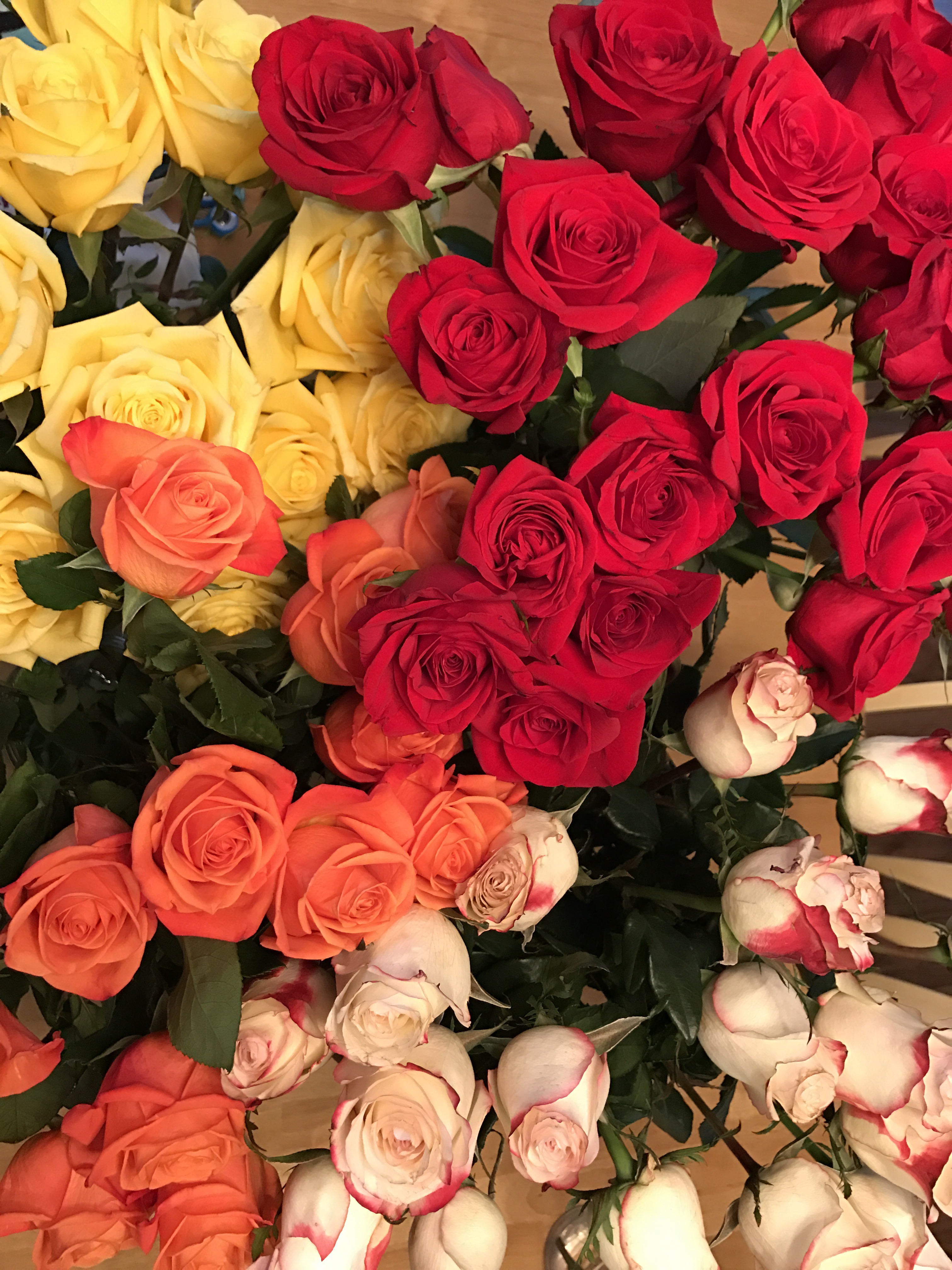 White roses with rosy tips are beautiful, clean, fresh, delicate, and pure. With all the things my husband forgets, it was significant to me that he remembered my love for roses with an accent color on the tips. And even though I like all the other rose colors best, my husband picked red for classic romantic love. They were even the more rosy red which I prefer, rather than dark red. The four colors just looked so cheerful and pretty together!