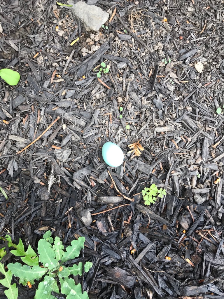 As if God was reminding me how important names really are, Finn and I reached our front sidewalk. There, alone on the grass, lay a perfectly, beautiful blue robin egg. Oh no! Where is its mommy? I need to find its nest! I went inside and called my daughter to come see, and to please help me look for the baby egg’s home.