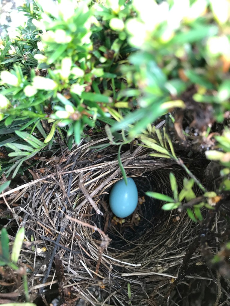 We didn’t have to look far. We both cautiously reached into the first bush, and there the nest lay… empty. Were there more eggs? Has the momma come and gone? Will she come back and care for her young one? Does she know her baby egg is missing? Does she know her little bird’s name?
