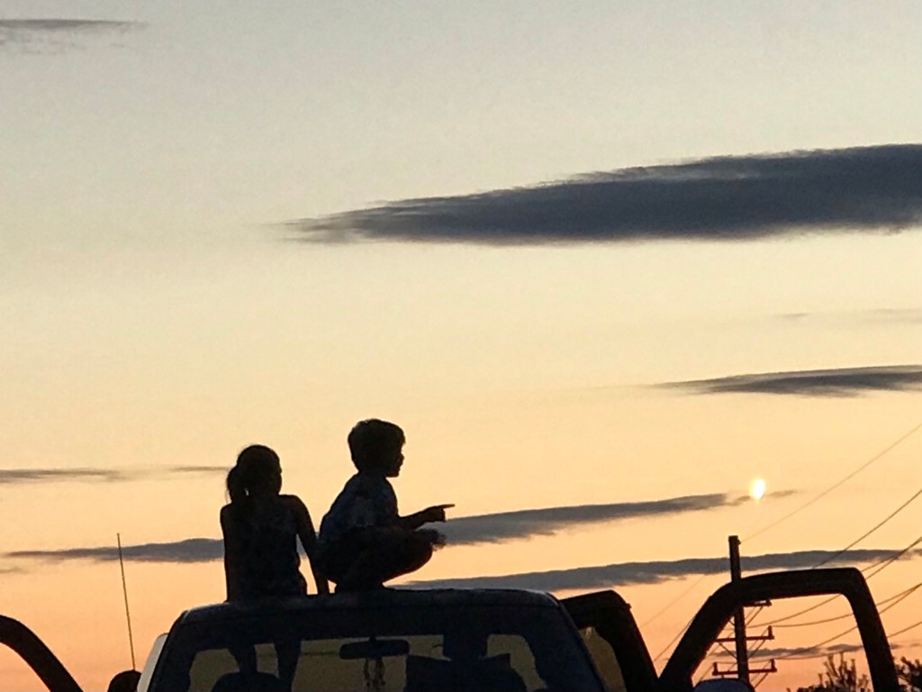 Another jolt of joy ran through my veins as I saw a ponytailed little girl sitting on top of a truck silhouetted against the sky. Her brother joined her, while pointing at some smaller firecrackers going off in a different direction. It reminded me of my younger self, and the excitement of watching fireworks on the roof of the car with my little sister. We’d rate them 1-10, and giggle, making sound effects for the ones that fizzled and didn’t quite make it.
